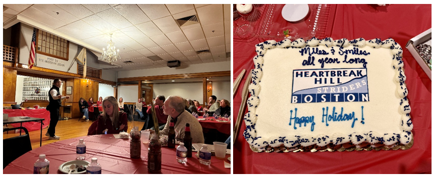 The Team Hoyt and Hoyt Foundation President & CEO Russ Hoyt was invited to be the featured speaker at the Heartbreak Hill Striders Holiday Party. The crowd was thrilled to hear the Team Hoyt story and even shared a few of their own. Many in the crowd had run alongside Dick and Rick at events all over New England. Each person had a story of running a strong race when all of a sudden, this guy pushing his kid just flew by. It was a lot of fun to tell the story and hear the stories of those who have known Team Hoyt.