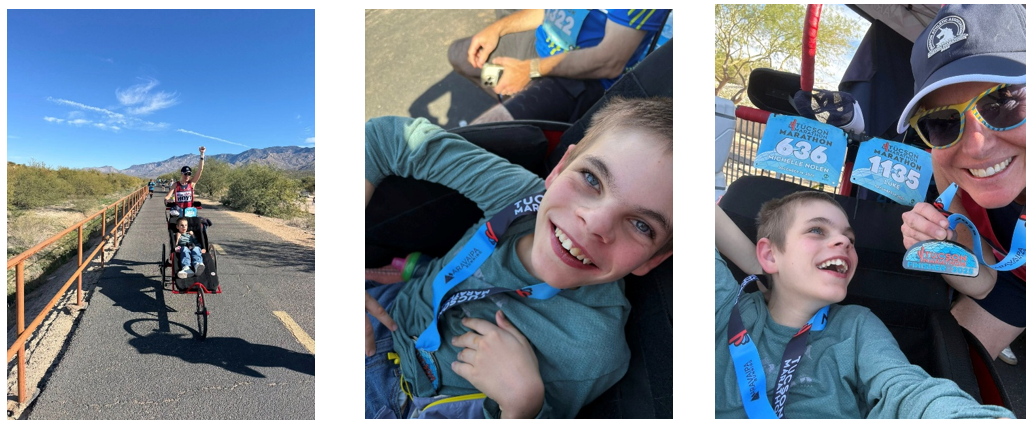 Team Hoyt Arizona runner Michelle Nolen is no stranger to marathon distances; she’s even collected a few Abbott World Major Marathon stars – including Boston, Berlin and Chicago. Her recent participation at the Tucson Marathon, however, marked a very special milestone, as she shared those 26.2 miles with her son Luke in his first-ever marathon distance!
